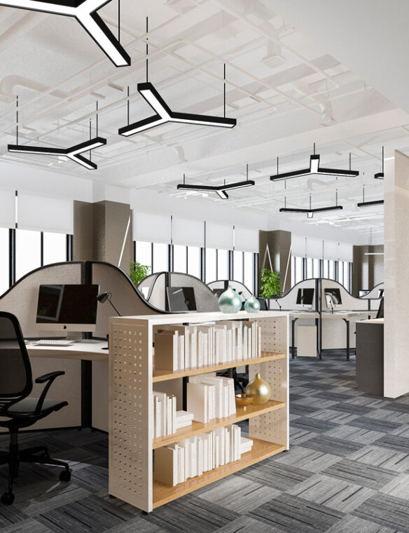 They greatly expanded the space, helped straighten the geometry and added light to the interior in Upscale sales office.